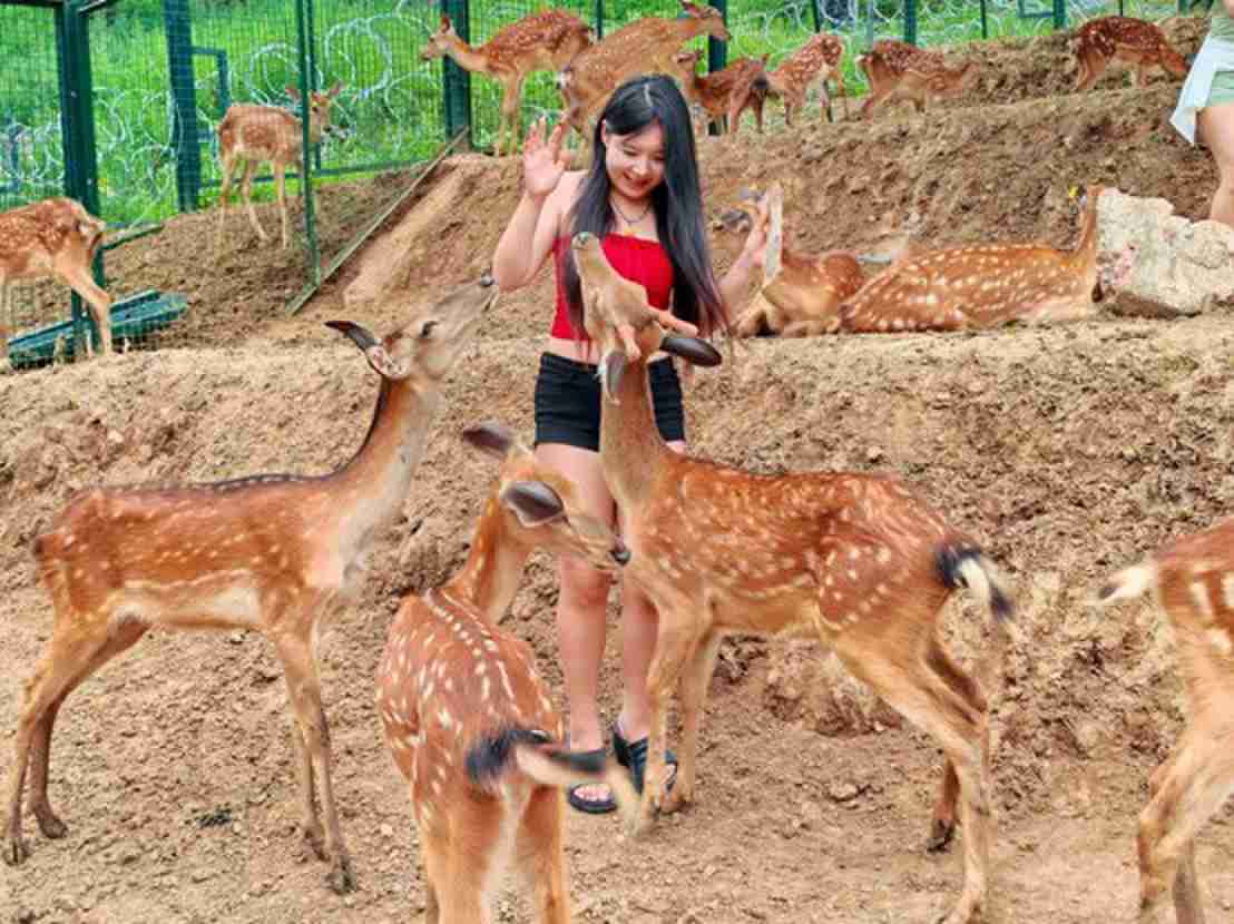 20日上午的松鹿欢乐谷,双子与百只梅花鹿同框的奇妙场景,宛如现实版“复制粘贴”;松鼠奥体中心的“萌宠运动会”,为游客带来欢声笑语:羊驼选手在游客面前身披云朵色卷毛,以超模步伐踩准鼓点,一伸一缩的脖子自带节拍器,小兔子则灵活地跳跃、敏捷的转身……围观者欢呼声如潮如浪。