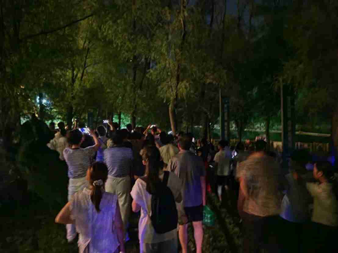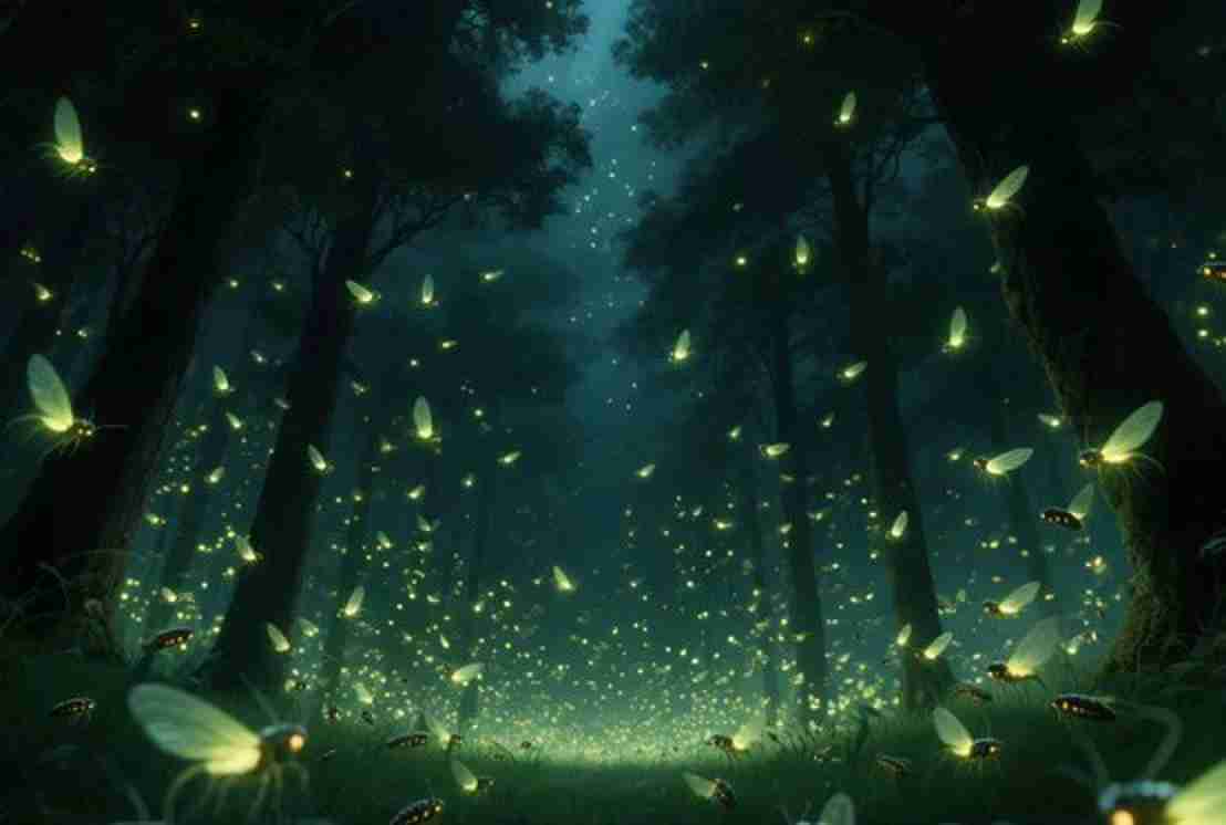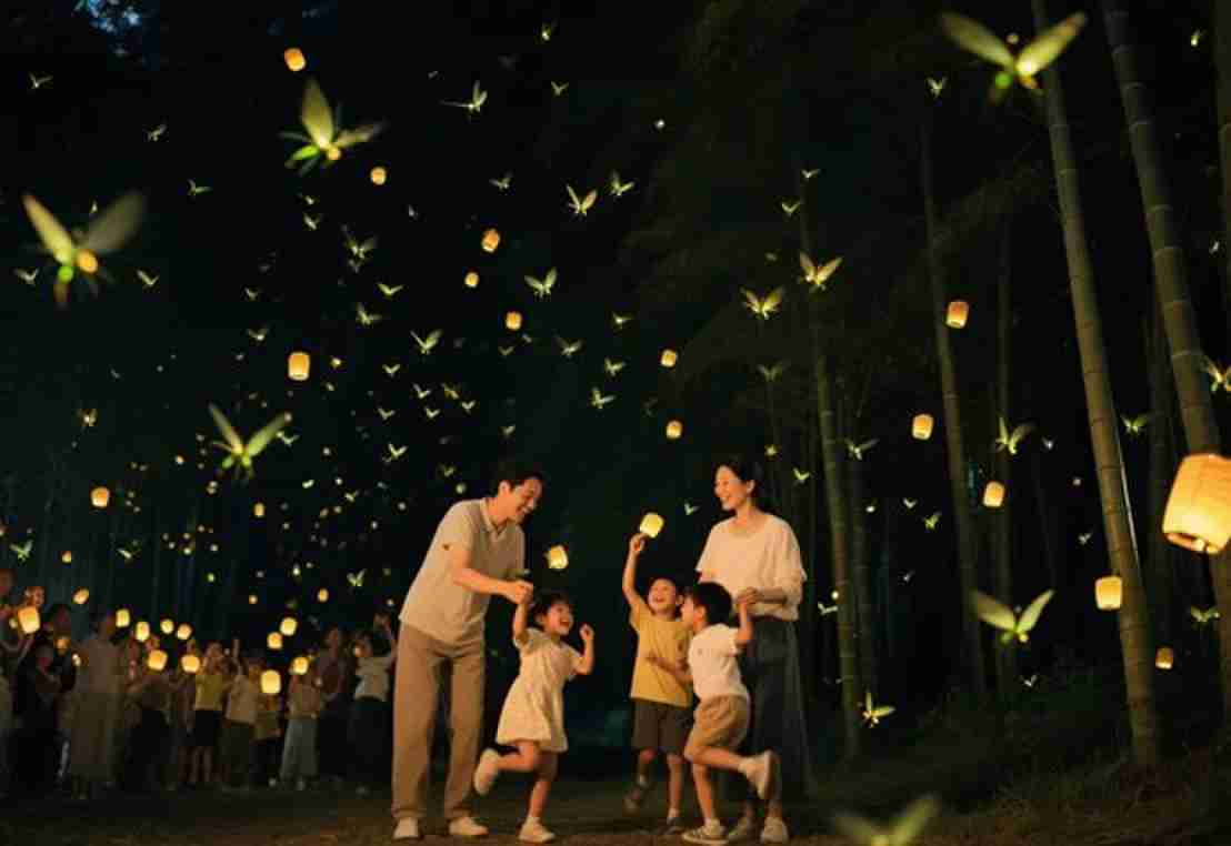活动当晚,刘秀湖畔灯光熄灭,万只萤火虫从透明容器中腾空而起。点点绿光在草丛、树梢与湖面之间穿梭,仿佛把宫崎骏的动画搬进了现实。景区特别划定“静默观赏区”,禁止大声喧哗及开启强光源,只为给萤火虫与游客留下最温柔的时刻。